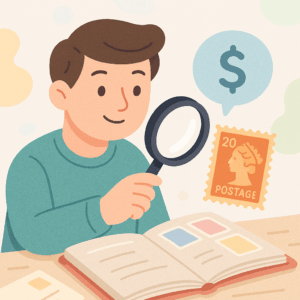After identifying the stamp, compare it against catalog values and recent realized prices from auctions and marketplaces.
